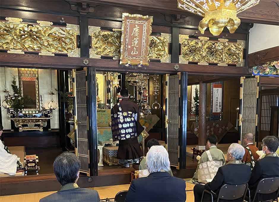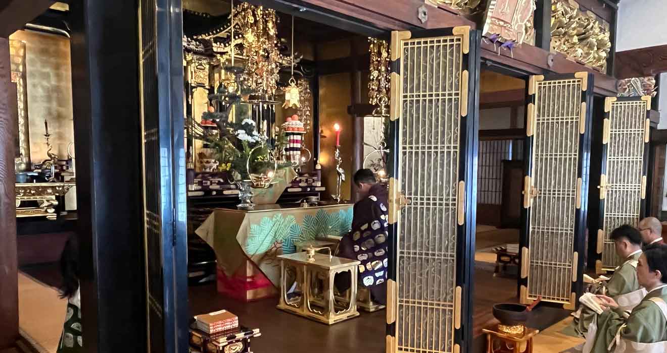 本堂は全席椅子席・冷暖房完備。どなたでも安心してお参りいただけます。